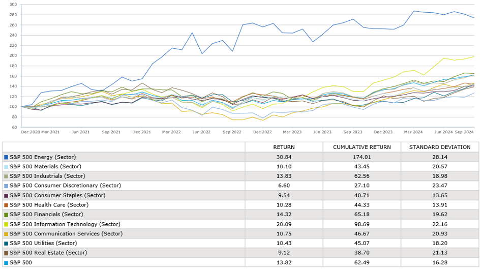 Equity Sector Performance During Biden’s Full Term (January 2021 – September 2024) (Source: Zephyr)