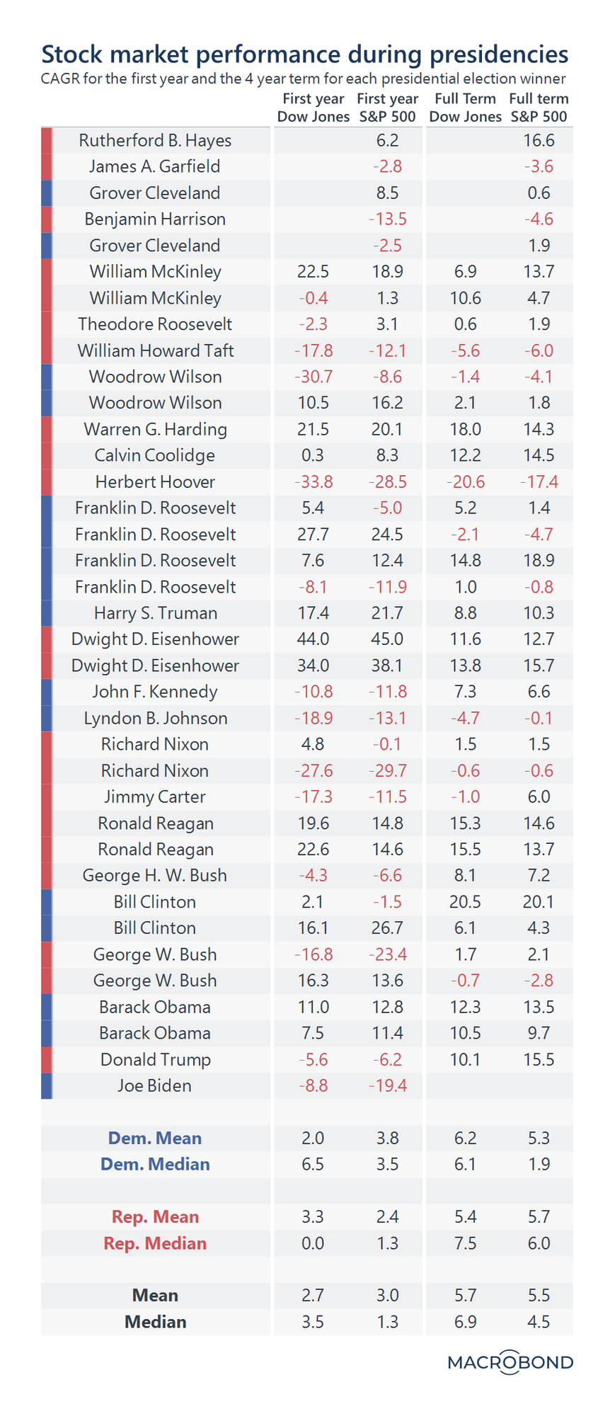 Equity & Bond Performance During Inauguration Year (Source: Zephyr)