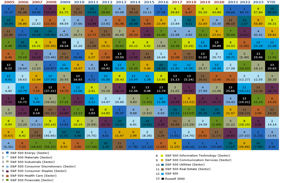 Annual Equity Sector Performance During Different Regimes (Source: Zephyr)
