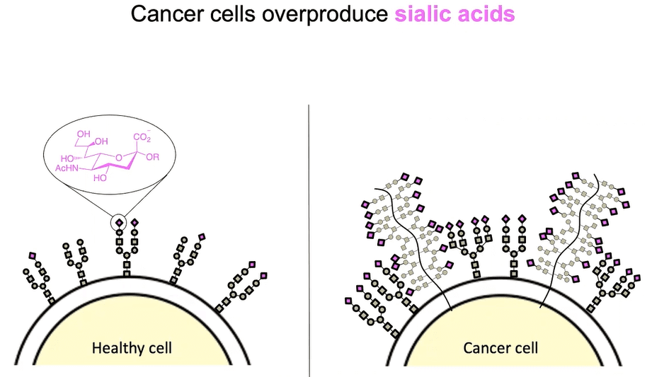 But as biorthogonal chemistry developed, it became clear that the approach had therapeutic applications Bertozzi said, explaining that the starting point was to establish why cancer cells- overexpress sialic acid-containing glycans.