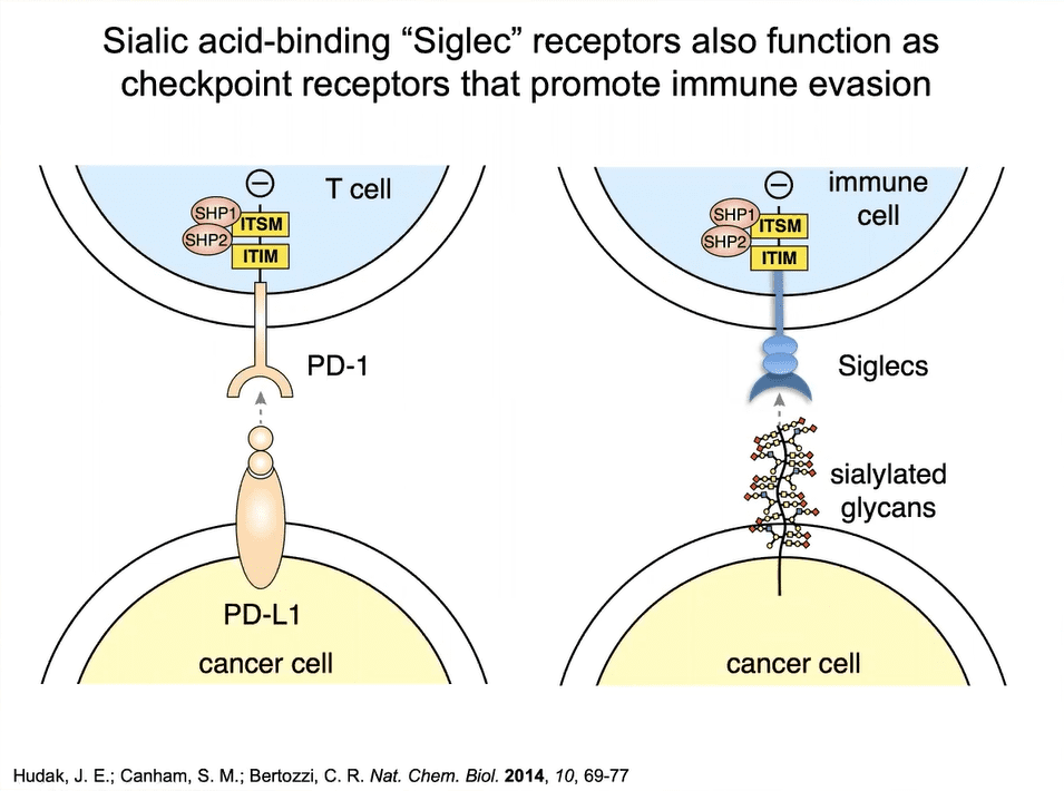 “Many of the siglec family members have the same inhibitory biochemical signaling mechanism as the T-cell checkpoint receptor PD1… We confirmed that overproduction of sialoglycans engages siglec structures which shuts down the immune response.