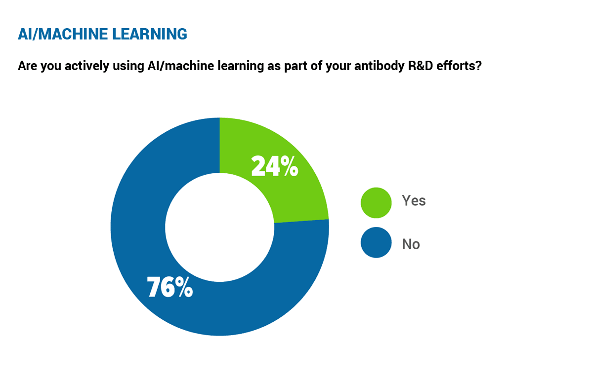A quarter of the respondents say that they are using AI and/or machine learning as part of their R&D, including nearly half of those working with ADCs and CAR-T/cellular therapies.