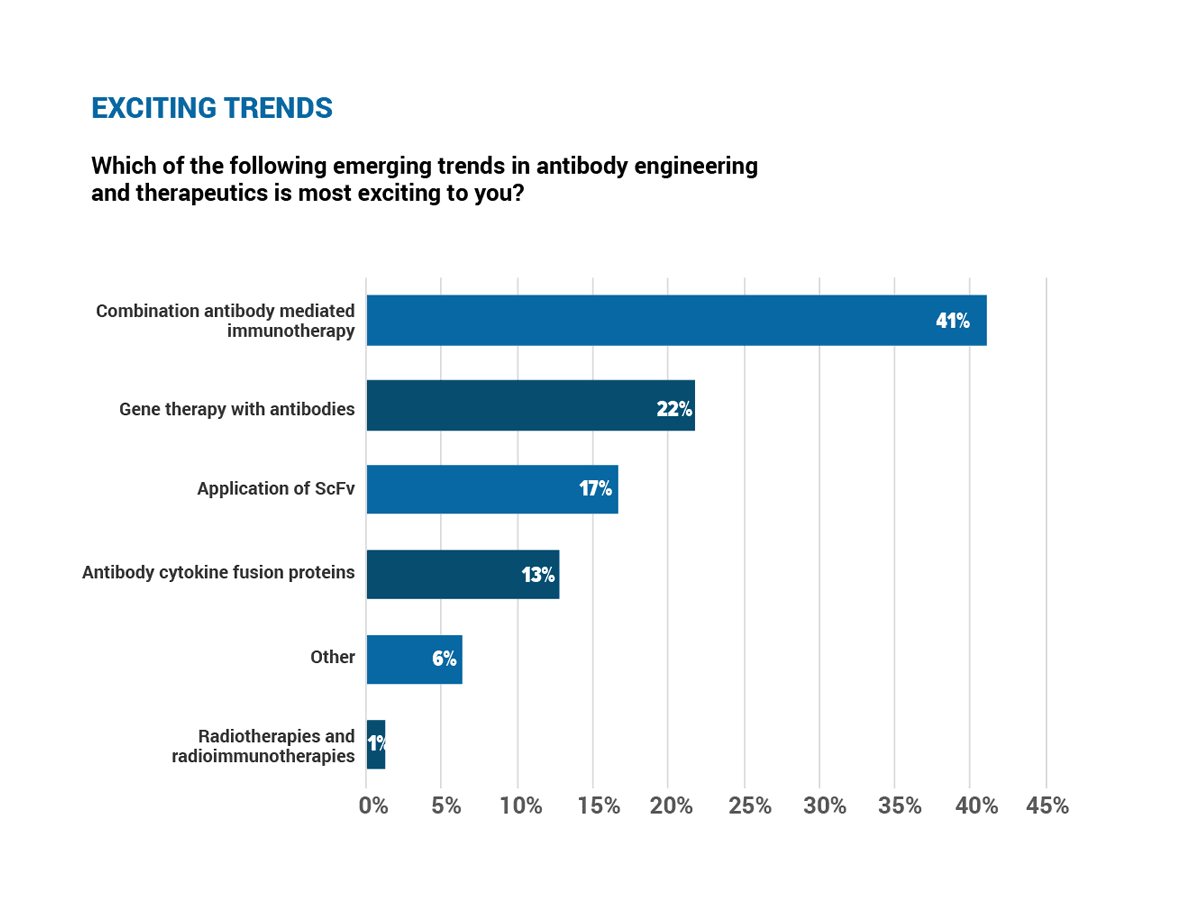 41% of the respondents believe that combination antibody mediated immunotherapy is the most exciting emerging trend in antibody engineering and therapeutics.