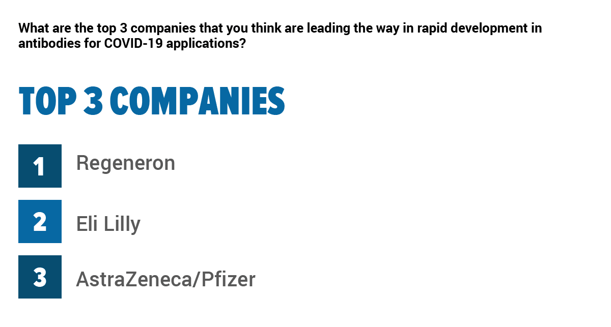 Regeneron is the highest named by respondents as an industry leader for COVID-19 applications.