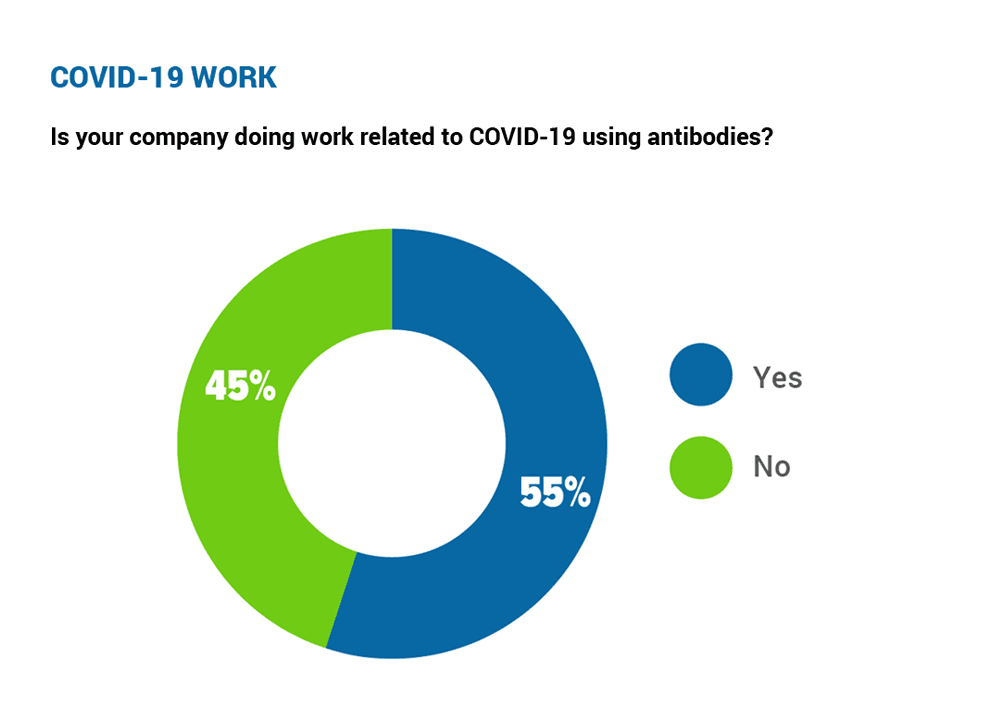 Nearly all the respondents whose work with antibodies related to COVID-19 say that they are working on COVID-related therapeutics.