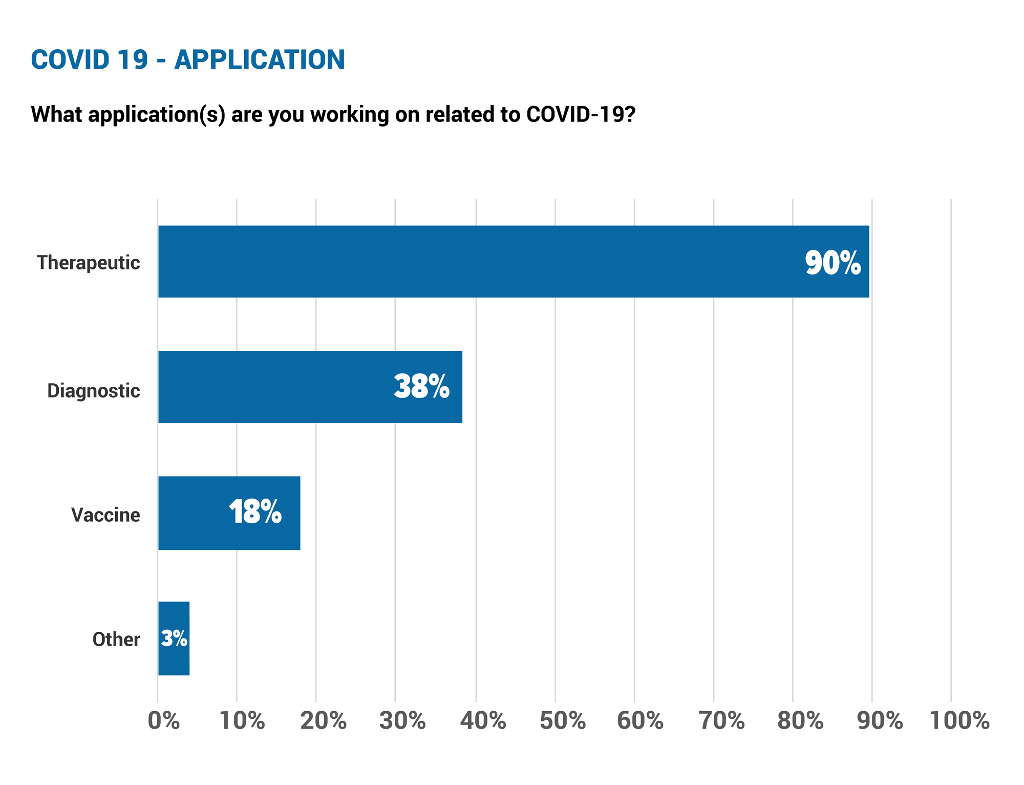 Just under a fifth of respondents said that they are working on vaccines related to COVID-19, 71% of whom are from academic institutions.
