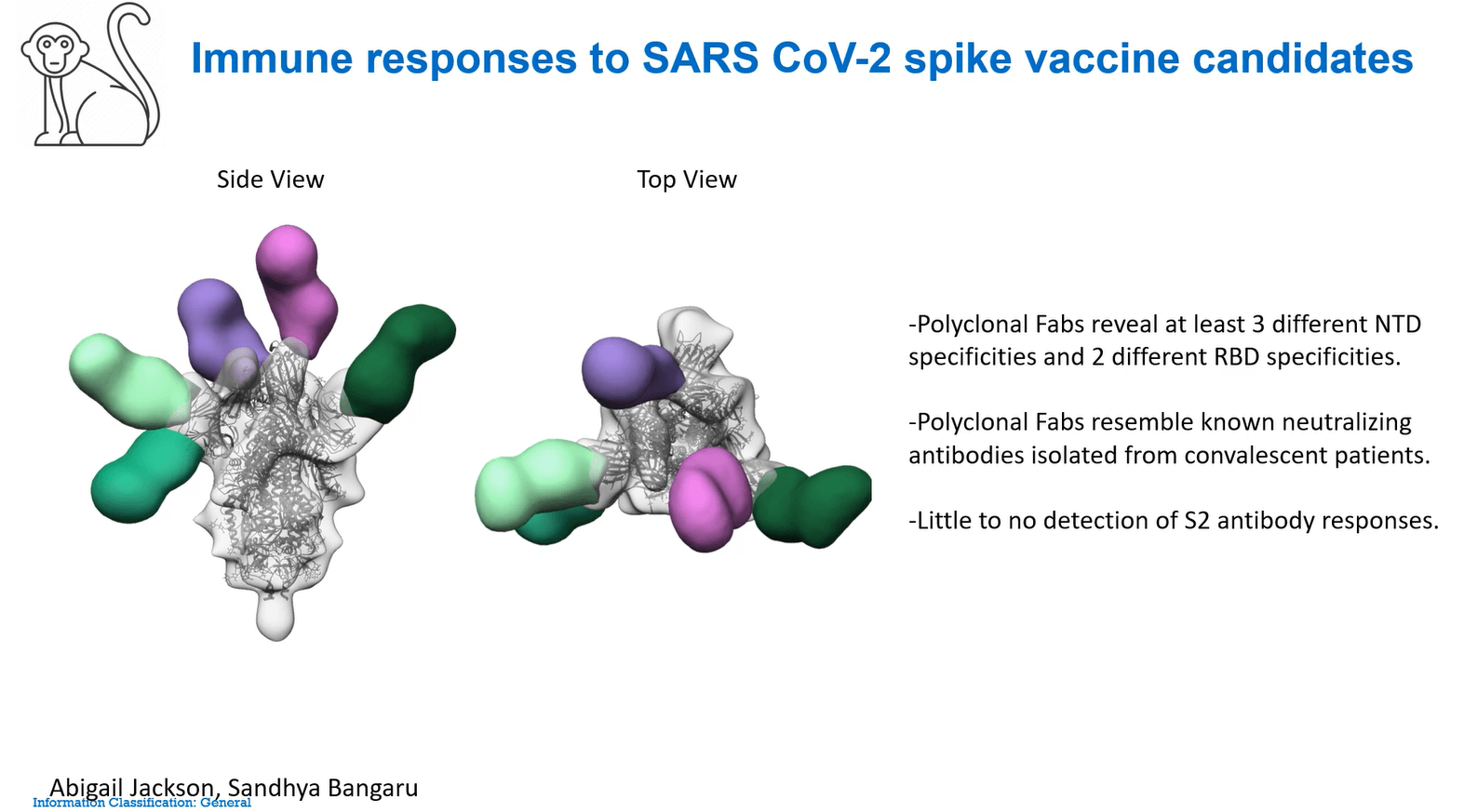 The structures of neutralizing antibodies were grouped into most abundant classes to lay the ground for vaccine and therapeutic strategies. Prof Bjorkman highlighted that the prediction between competition/no competition among neutralizing antibodies is complicated. To illustrate her point, she presented an exception to the classification her group developed. BG1-22, a VH3053/VH3-66 antibody with a long CDRH3 binds to the class 1 RBD epitope.