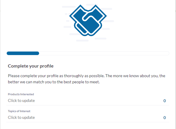 You will be immediately asked to select your preferences regarding your topic and product interests. This will help customise your profile for the integrated AI matchmaking. Enabling the platform to create a specialised list of relevant attendees to you.