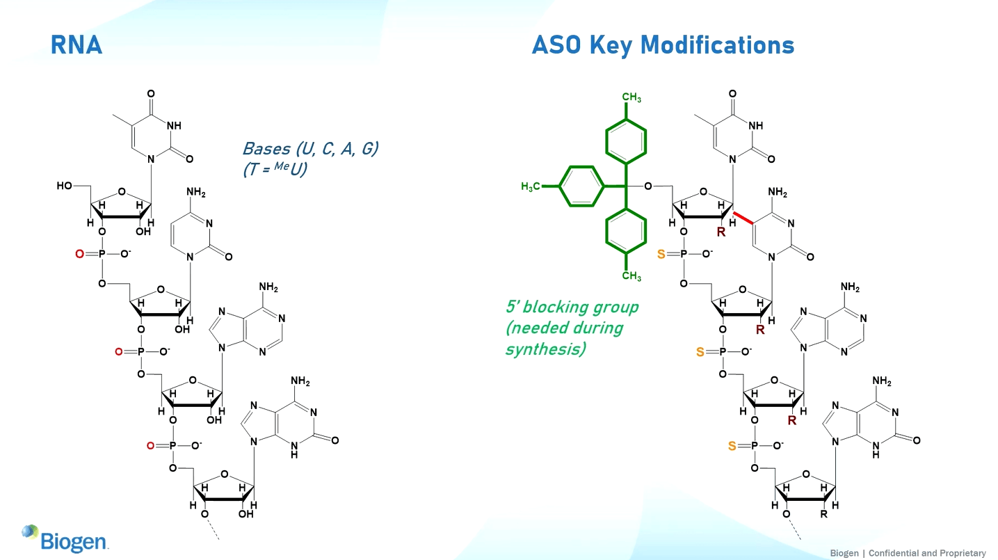 At Biogen they use both 2’ modified (Methoxyethyl, MOE) and 2’ unmodified (deoxy) ASOs which make up eight distinct “flavors” of amidites based on the presence of different bases and two different 2’ profiles.