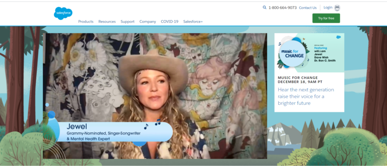 Music for Change: Hear the Next Generation Raise Their Voice for a Brighter Future helped Salesforce enter conversations around justice, race, and inclusion. The virtual event highlighted original songs from students around the world and featured celebrity judges will.i.am, Jewel, Dave Wish, and Dr. Ron C. Smith.