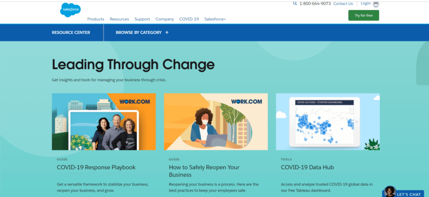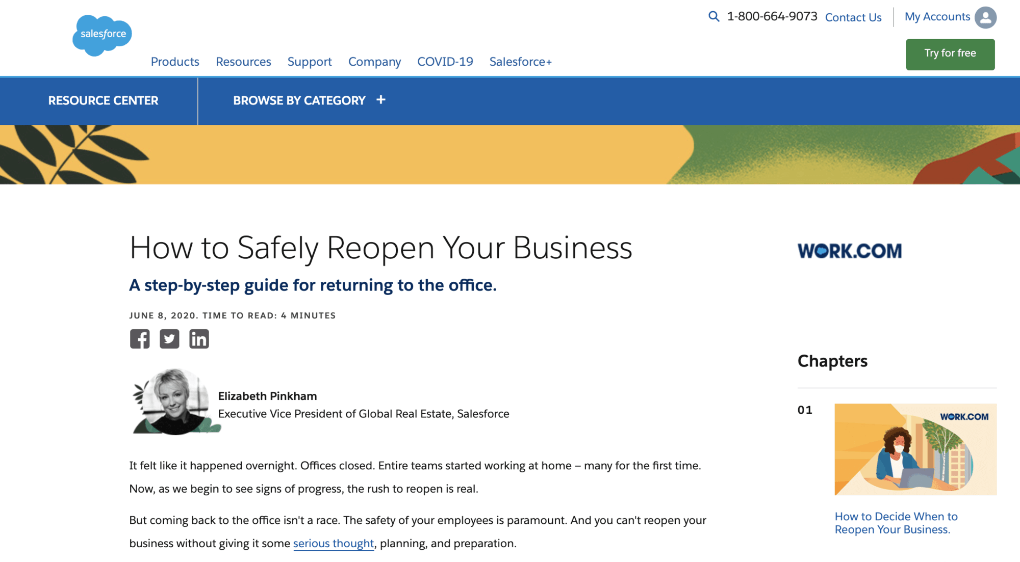 Leading Through Change content focused on challenges – like how to safely reopen a business – identified by the customer insights team at Salesforce.