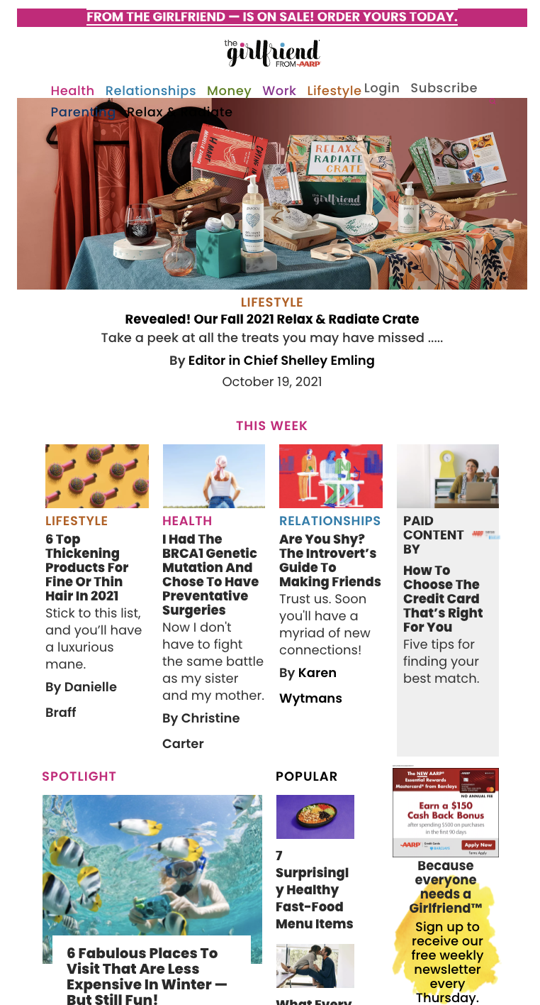 Sisters From AARP connects with a niche that Claire describes as “unaccustomed to targeted media that celebrates and supports them at the age and stage that they — we — are at now.”