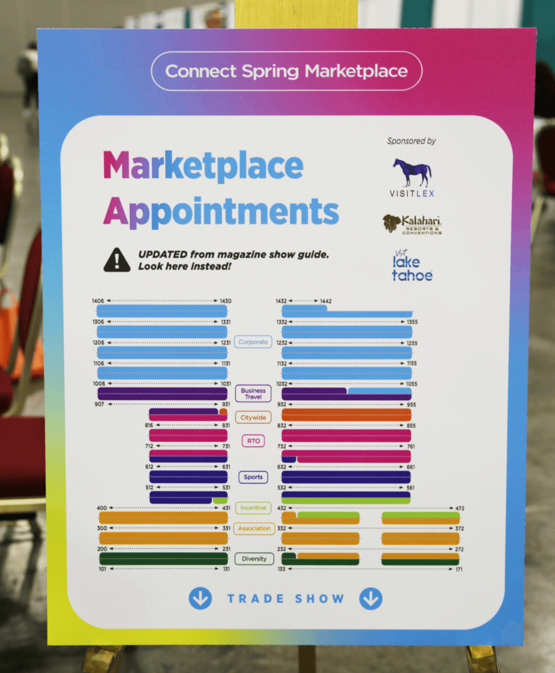 As the Marketplace Aisle Signage sponsor at Connect Marketplace, you'll stand out to attendees as they navigate their way through the event. Your logo will be prominently displayed on aisle signage throughout the conference, ensuring that attendees are reminded of your brand with every step they take.SPONSORSHIP INCLUDES:- Branded signage in the Marketplace Appointment area that will guide attendees down the aisles. - These signs will point attendees in the right lane to walk in to get to their appointments. - Sponsor logo on the Connect website. - Exclusive per track: Association, Business Travel, Corporate, International, Specialty, and Sports.PRICING: Marketplace Aisle Signage $15k SOLD