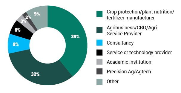 Respondents were from a broad section of the plant nutrition and crop protection industry. 39% of the respondents said crop protection/plant nutrition/ fertilizer manufacturing was their core business, while 32% identified agribusiness/CRO/agri service provider as a core business.