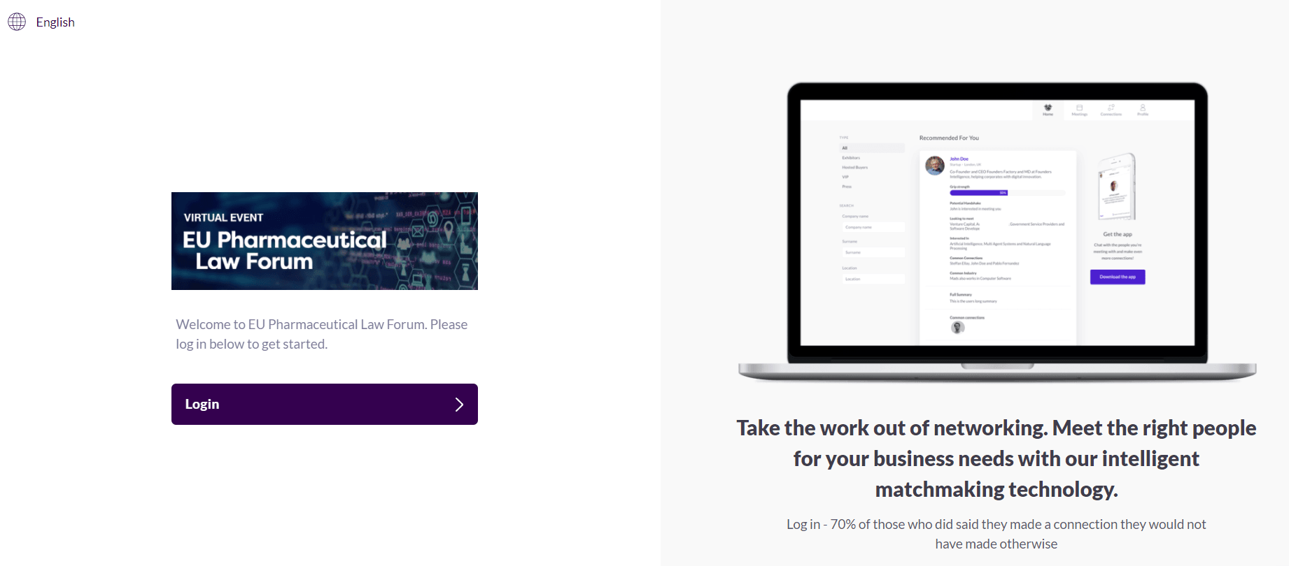 When you first login, you will immediately be asked to select your preferences regarding your topic interests. This will help to customise your profile for the integrated AI matchmaking technology, enabling the platform to create a specialised 'recommended' list of attendees for you.