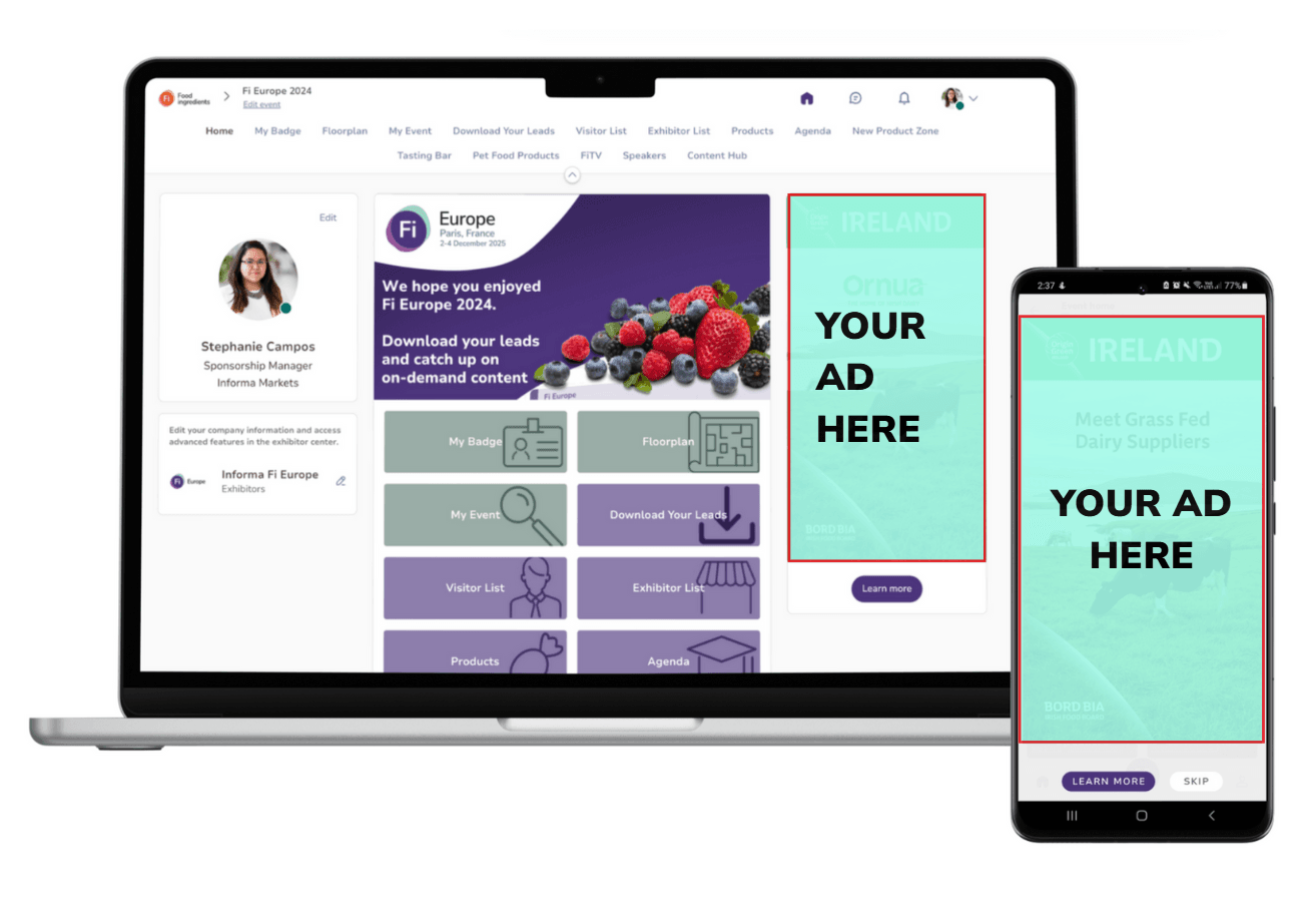 Gain exposure with sponsored online notifications. Logged in attendees using the event platform or mobile app will receive a pop-up message on their screens and/or smartphones.