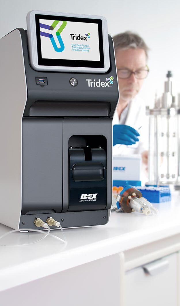 The Tridex Protein Analyzer is a completely unique solution which addresses a critical need in the biopharma industry. To learn more about Tridex, please visit www.idex-hs.com/bioprocessing.