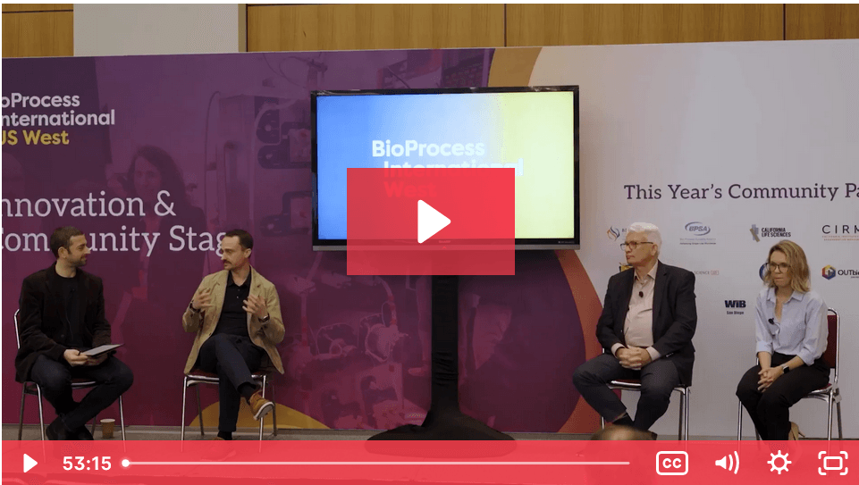 Roger Lias, commercial head of Biologics at Kymanox, Cassidy Cantin, associate partner at Latham BioPharm Group, and Andrew Harmon, senior consultant at Latham BioPharm Group, joined BioProcess International's own Dan Stanton on stage at BPI West to discuss the latest trends in the bioprocess space.