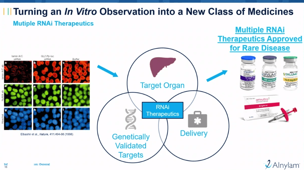 RNAi therapies could boost patient compliance for common diseases by targeting the underlying causes and minimizing the number of doses required, according to Alnylam Pharmaceuticals.