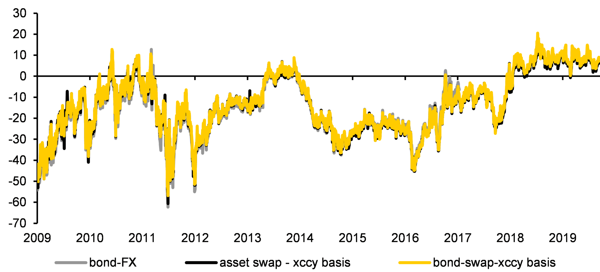 (2) Using asset swap spreads, 3s6s basis swaps, and cross-currency basis swaps