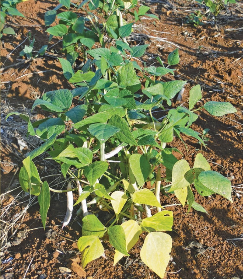 An N-deficient bean plant; similar symptoms take place under Co deficiency. Photo: IPNI