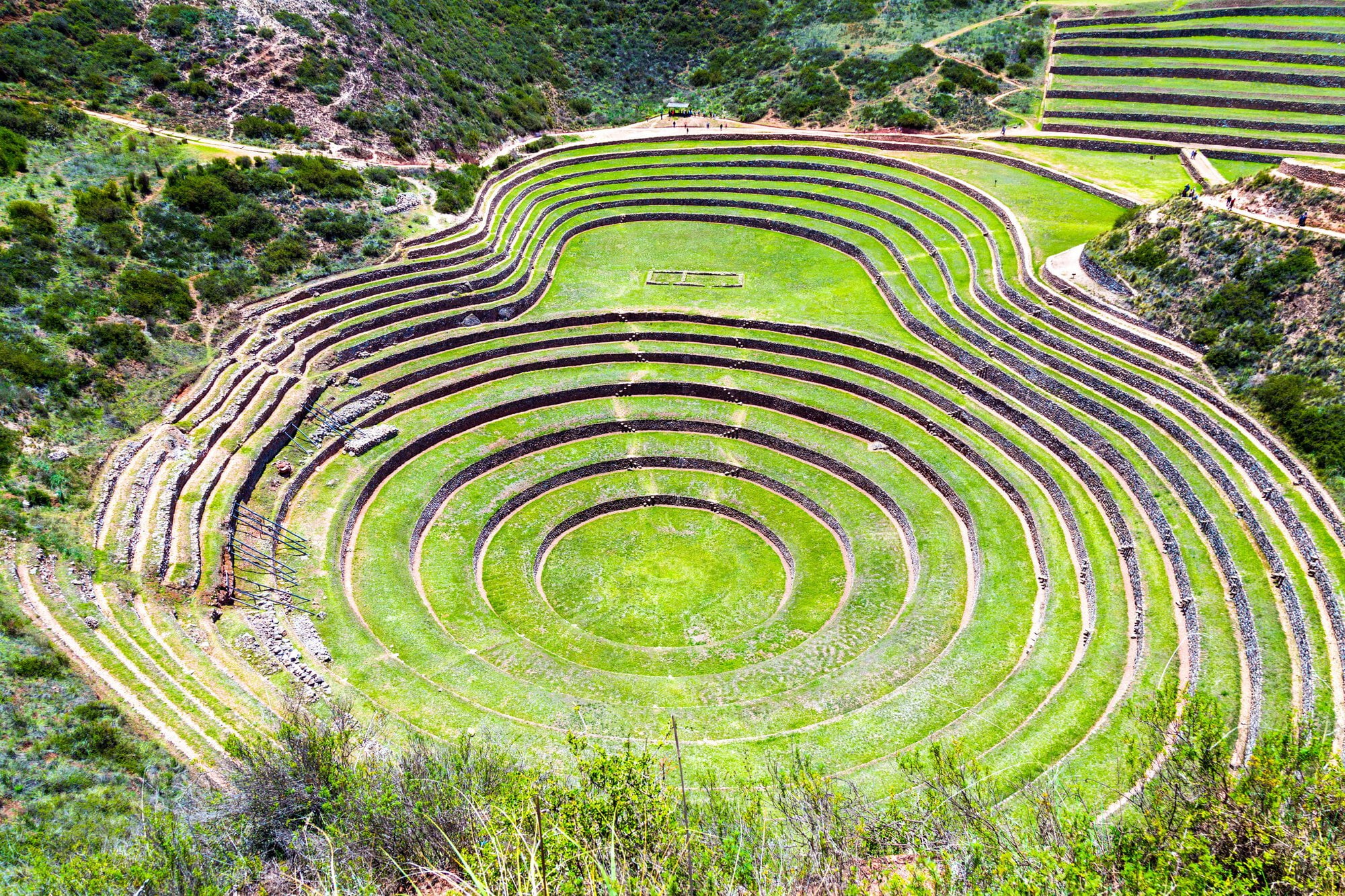 Terrazas en el sitio arqueológico inca de Moray, Valle Sagrado, Perú
