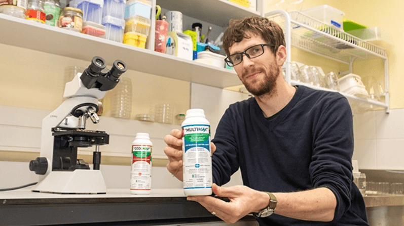 Dr. Michael Jukes, one of the Rhodes University researchers behind MultiMax and CodlMax, in a laboratory at the Centre for Biological Control.