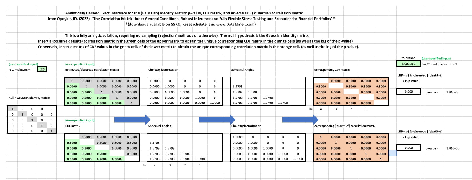 [8] Parlatore, C., and Philippon, T., (2022), “Designing Stress Scenarios,” NBER Working Paper 29901. [9] Opdyke, JD, (2022) “The Correlation Matrix Under General Conditions: Robust Inference and Fully Flexible Stress Testing and Scenarios for Financial Portfolios,” QuantMindsEdge: Alpha & Quant Investing, June 6, 2022. [10]Ng, F., Li, W., and Yu, P., (2014), “A Black-Litterman Approach to Correlation Stress Testing,” Quantitative Finance, 14:9, 1643-1649. [11]Yu, P., Li, W., Ng, F., (2014), “Formulating Hypothetical Scenarios in Correlation Stress Testing via a Bayesian Framework,” The North American Journal of Economics and Finance, Vol 27, 17-33. [12]Hansen, P., and Archakov, I., (2021), “A New Parametrization of Correlation Matrices,” Econometrica, 89(4), 1699-1715. [13]Lan, S., Holbrook, A., Elias, G., Fortin, N., Ombao, H., and Shahbaba, B. (2020), “Flexible Bayesian Dynamic Modeling of Correlation and Covariance Matrices,” Bayesian Analysis, 15(4), 1199–1228.