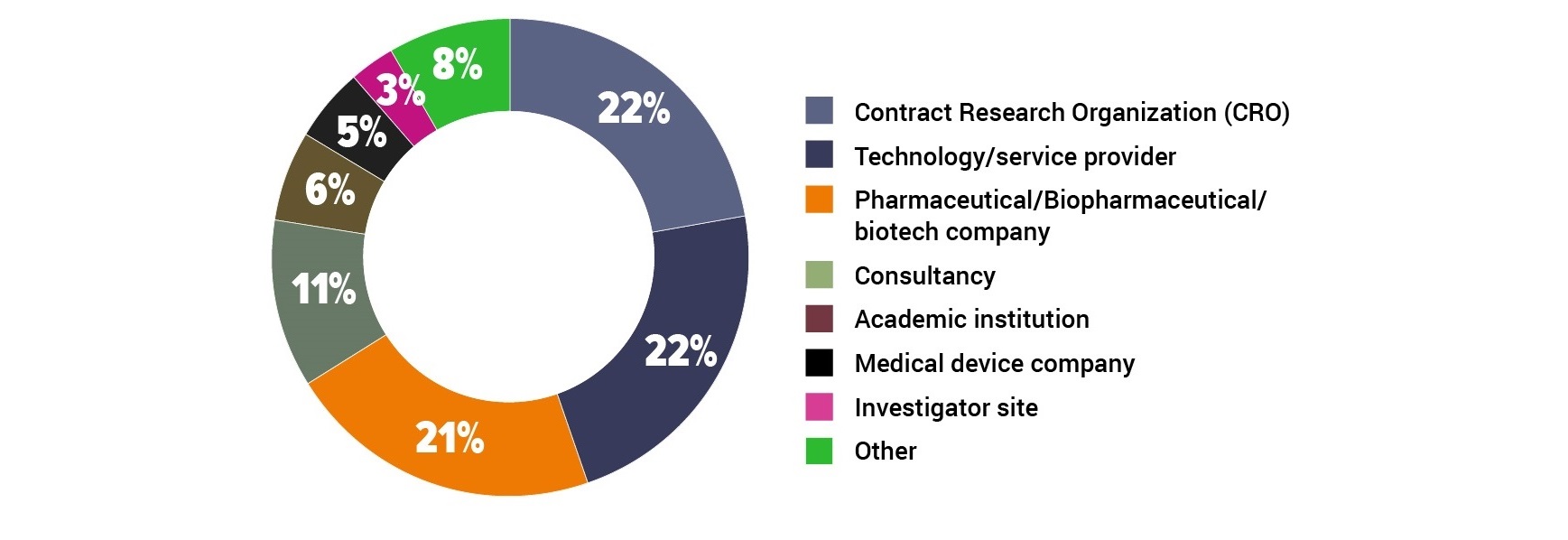 For the purpose of this survey and report, DCT includes remote clinical trial services. DCT services are used to substitute or complement traditional in-clinic patient visits. This focuses on Phase I, II and III and includes home trial HcP/nurse visits and patient visits supported by remote technology.