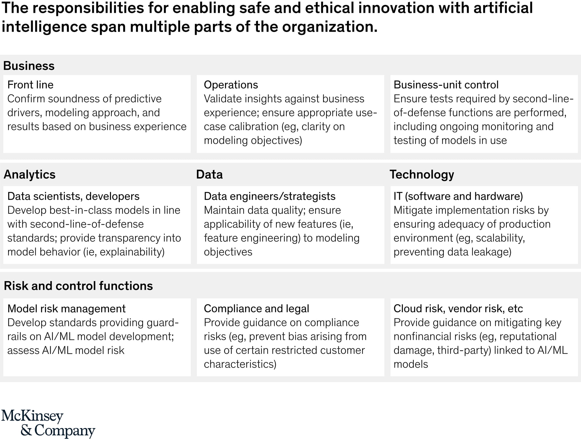 Artificial intelligence (AI) is poised to redefine how businesses work. Already, it is unleashing the power of data across a range of crucial functions, such as customer service, marketing, training, pricing, security, and operations. To remain competitive, firms in nearly every industry will need to adopt AI and the agile development approaches that enable building it efficiently to keep pace with existing peers and digitally native market entrants. But they must do so while managing the new and varied risks posed by AI and its rapid development.