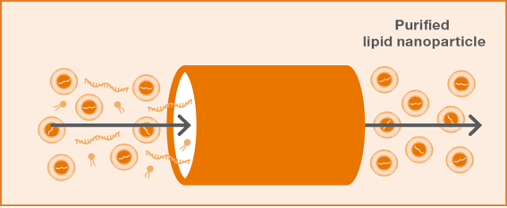 mRNA - LNP purificationResulting lipid nanoparticle (LNP) – mRNA complexes undergo TFF and diafiltration to remove any residual process contaminants and ensure sterility of the final product.